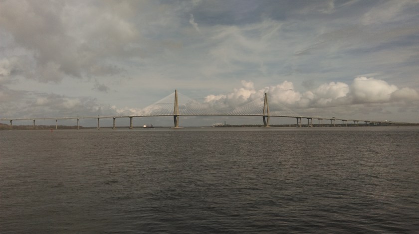 Previous Image Next Image IMAG0056 Completed in 2005, the Arthur Ravenel Jr. Bridge spans the Cooper River to connect Charleston with the suburb of Mount Pleasant.
