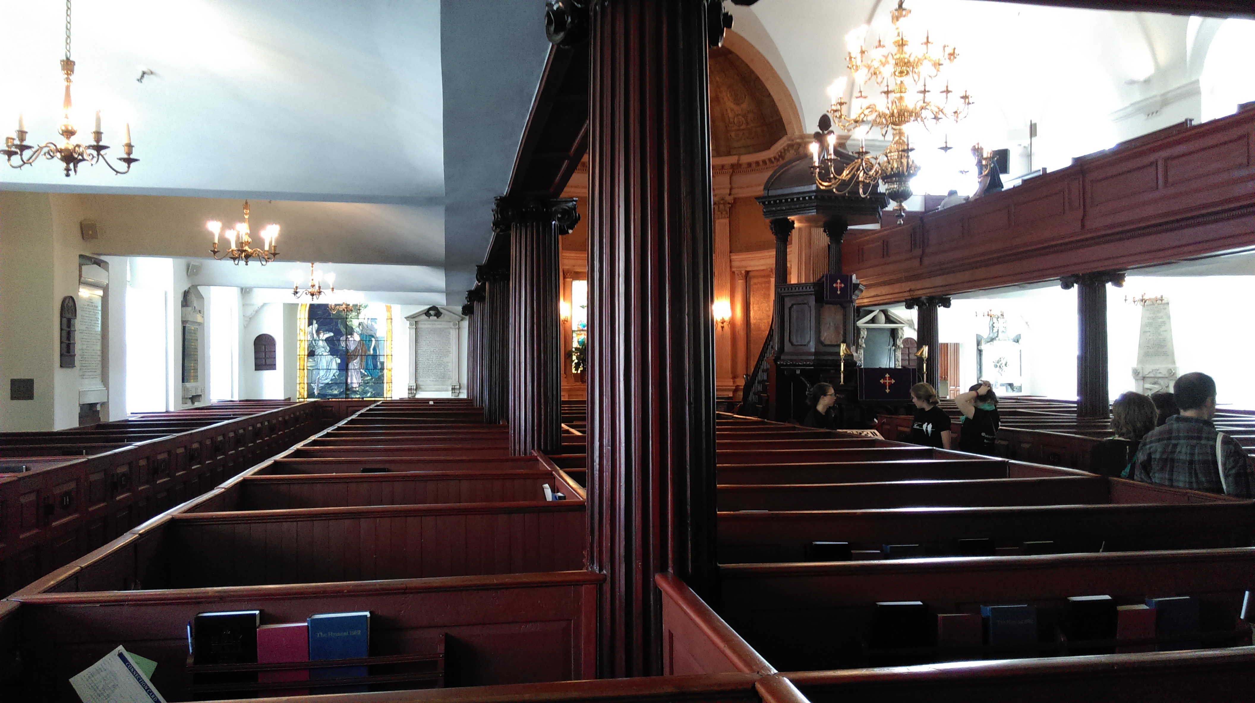 Previous Image Next Image IMAG0683 The inside of Saint Michael’s Church displays many touches of the period of construction, including the pews with doors and a very tall pulpit.
